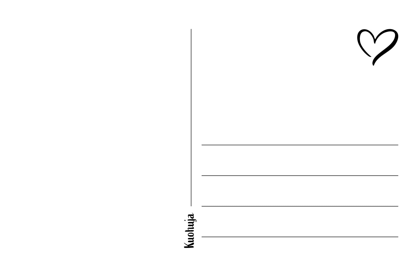 Valkoisella taustapuolella printattuna osoiterivit. Taustapuoli mattapintainen.