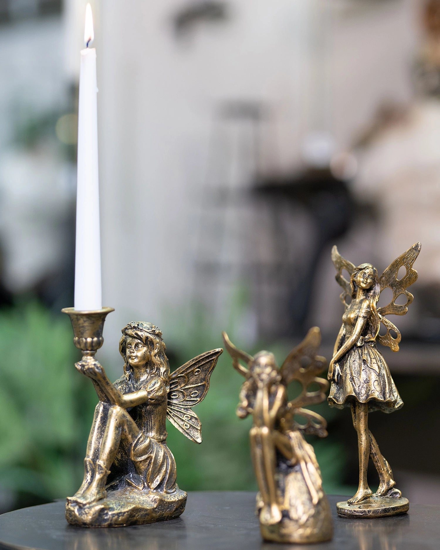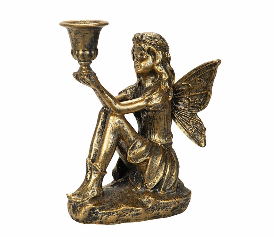 Tämä istuva keiju kynttilänjalka kädessään on ihastuttava tapa korostaa kynttilöitä. Valmistettu metallista.