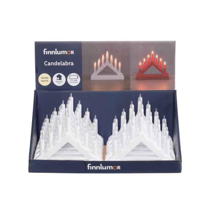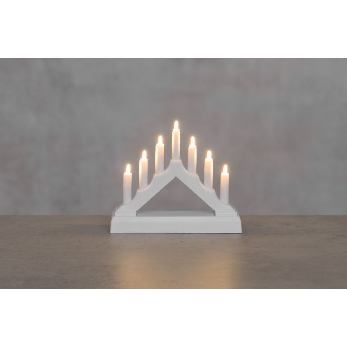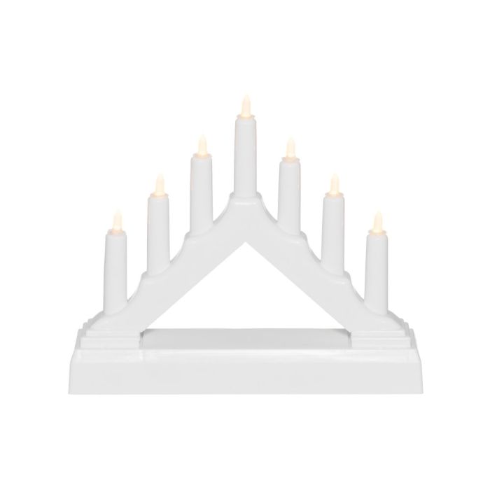 Supersöpö paristotoiminen 7-haarainen kynttelikkö minikoossa. Lämmin valkoinen LED-valo. Aseta vaikka autoon luomaan joulun tunnelmaa!