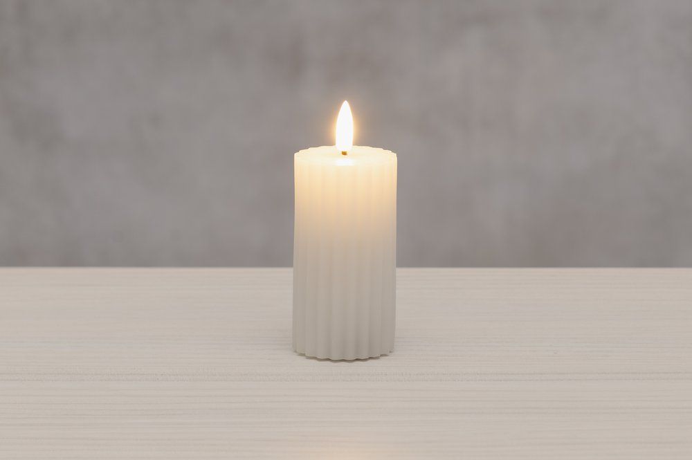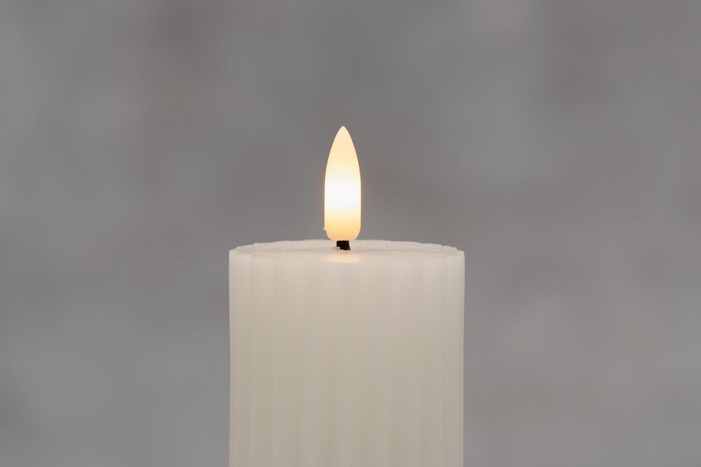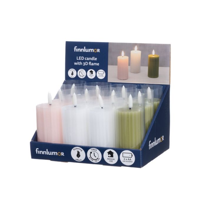 Kauniisti uritettu parafiinivahasta valmistettu LED-kynttilä aidon näköisellä 3D-liekillä. Ajastintoiminto 6h On-Off. Paristot 2 x AA (ei sisälly pakkaukseen). Vain sisäkäyttöön.
