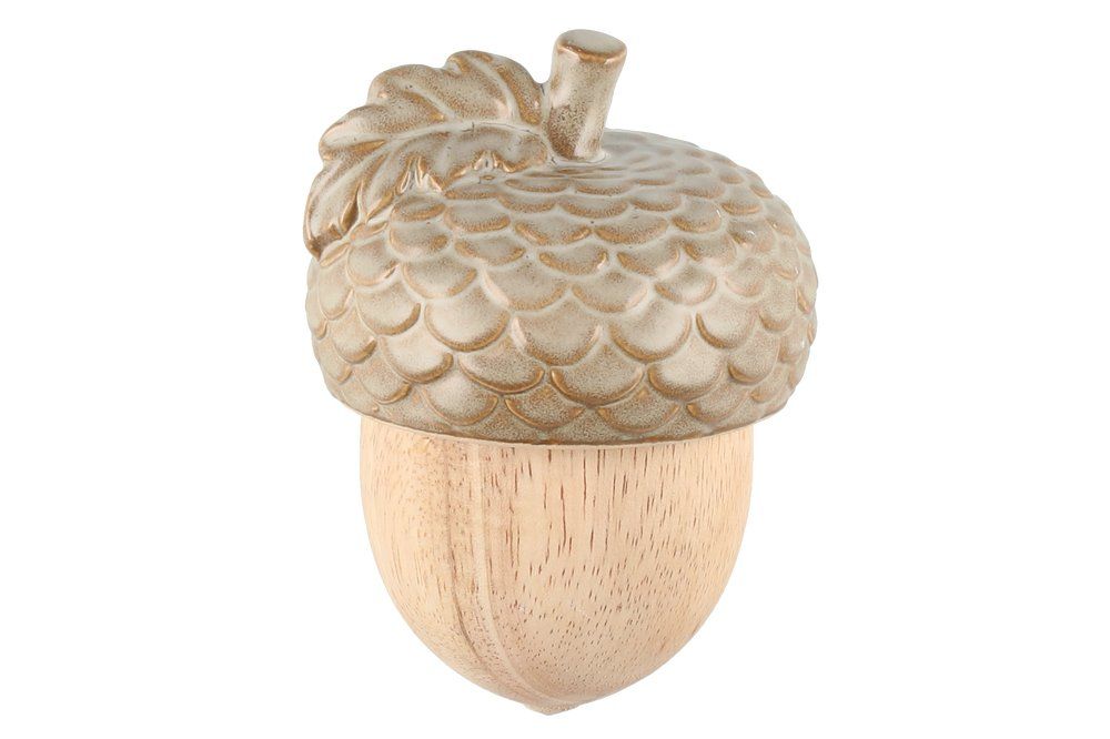 Ihastuttava koriste-esine. Puinen tammenterho, jonka kanta on keramiikkaa. Kaunis pöytäkoriste kattaukseen ja sommitelmiin.