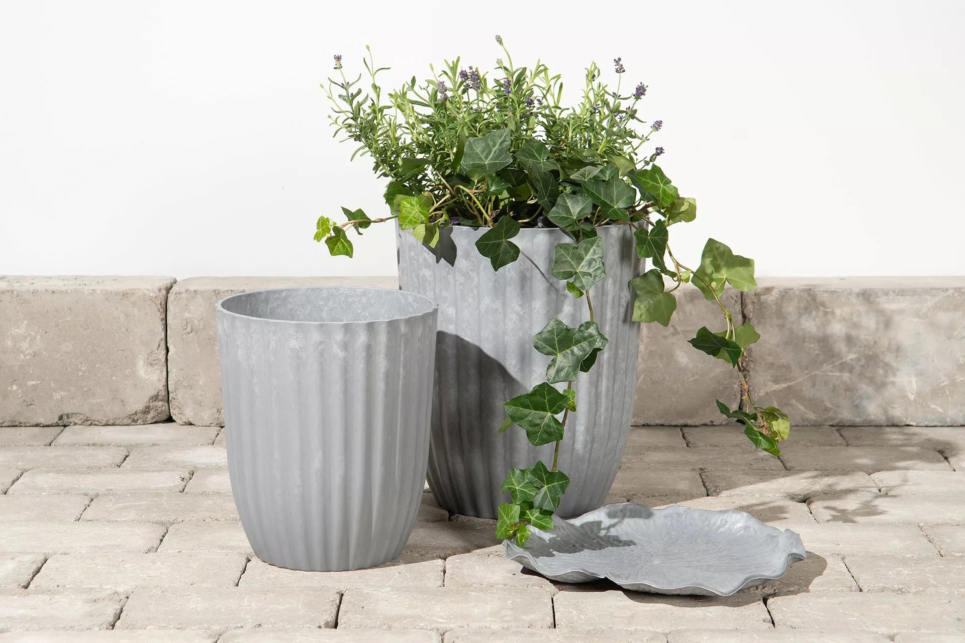 Upea iso kierrätetystä muovista valmistettu tarjotin. Muoto ja pinta kuin oikea lehti. Sopii loistavasti kruunaamaan kattauksen tai vaikka kukkaruukun alle.