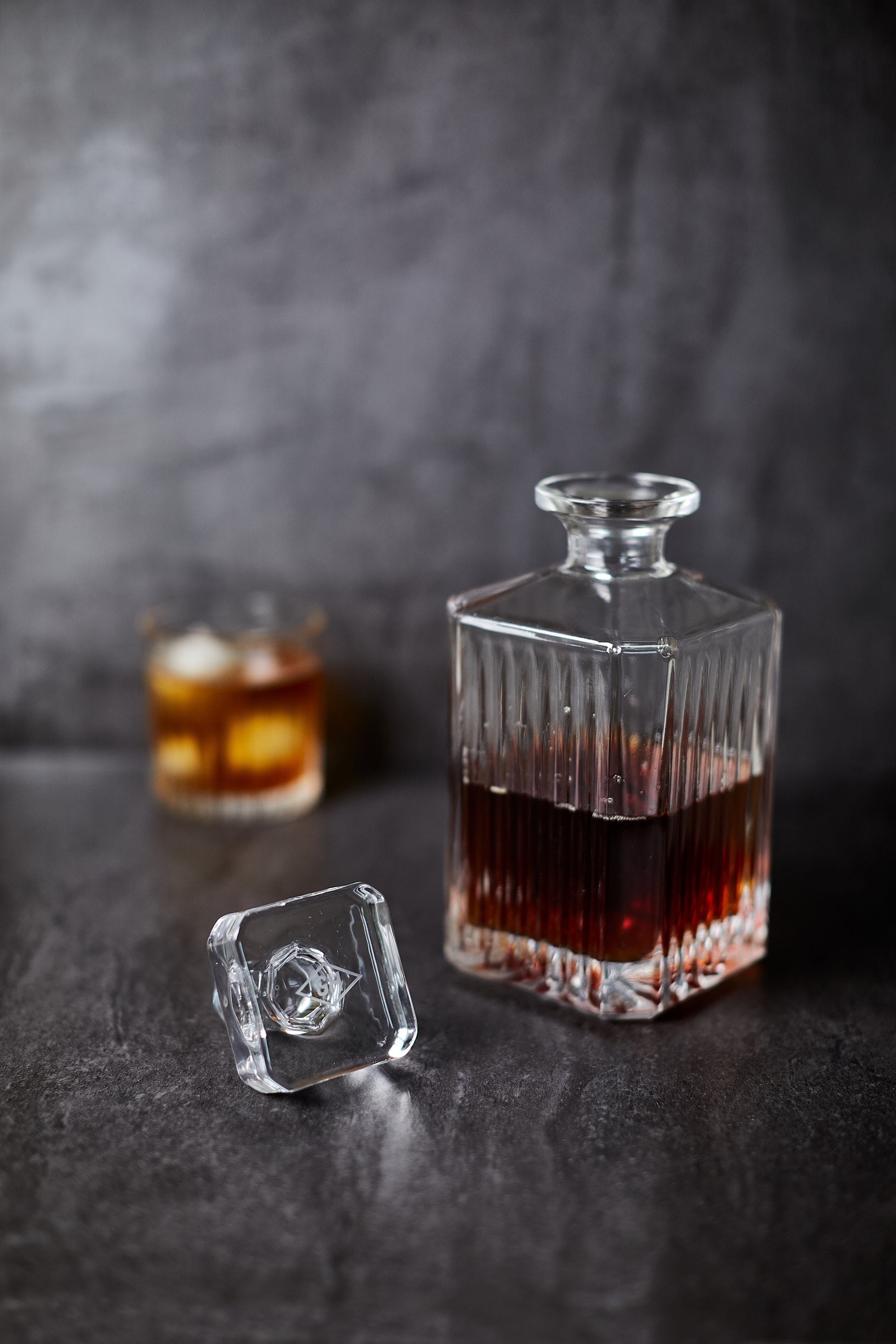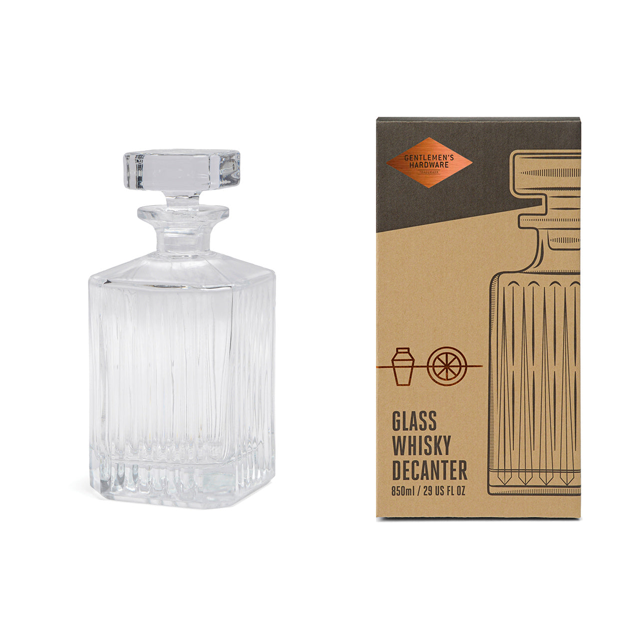 Tyylikäs lasista valmistettu ja kaiverretulla logolla varustettu vintage-tyylinen karahvi, johon mahtuu jopa 850 ml suosikkijuomaasi.