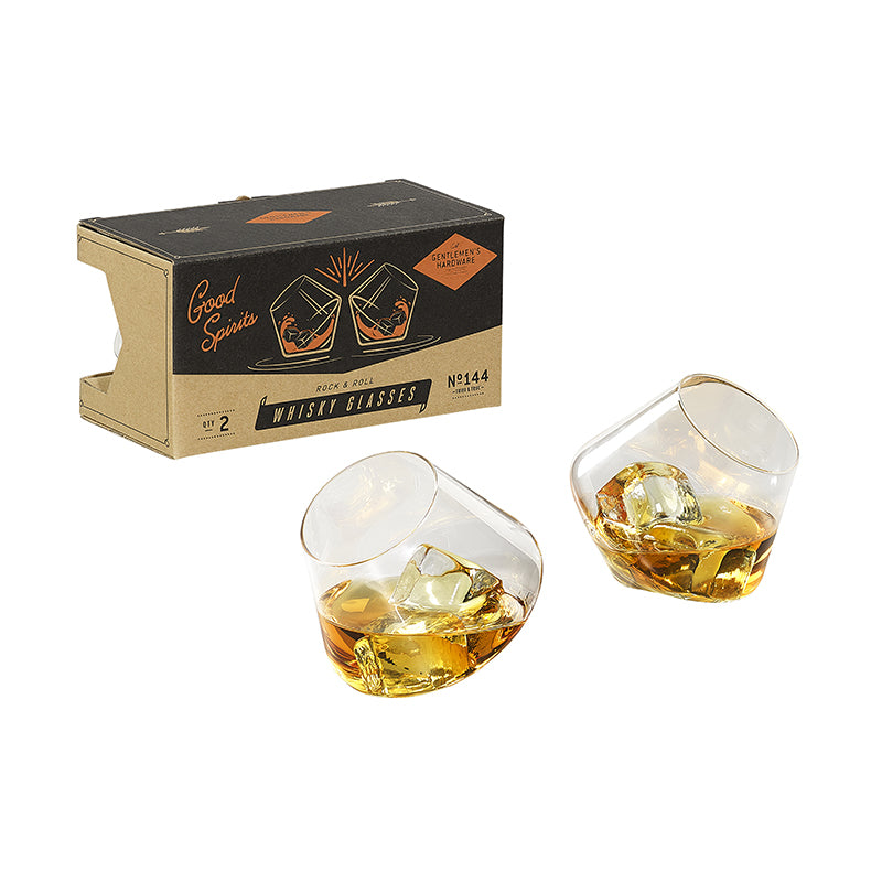 Täydellinen lahja viskin ystäville! Kahden keinuvan viskilasin setti.